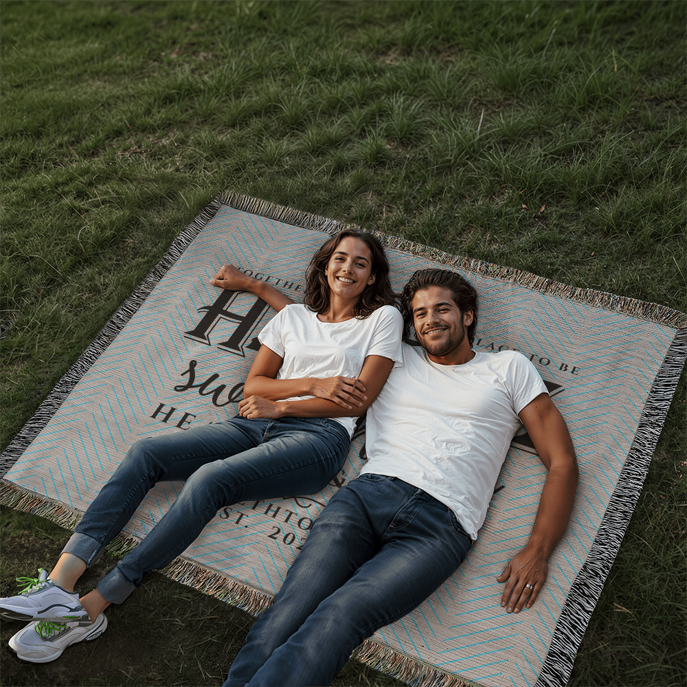 Crafted in the USA from 100% cotton yarn, this blanket provides breathable comfort, soft texture, and heirloom-quality craftsmanship. Whether displayed in a cozy living room, wrapped around loved ones, or gifted to a special couple, this throw makes home feel even more personal.