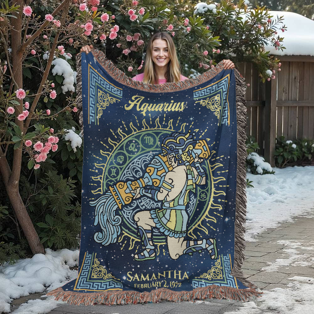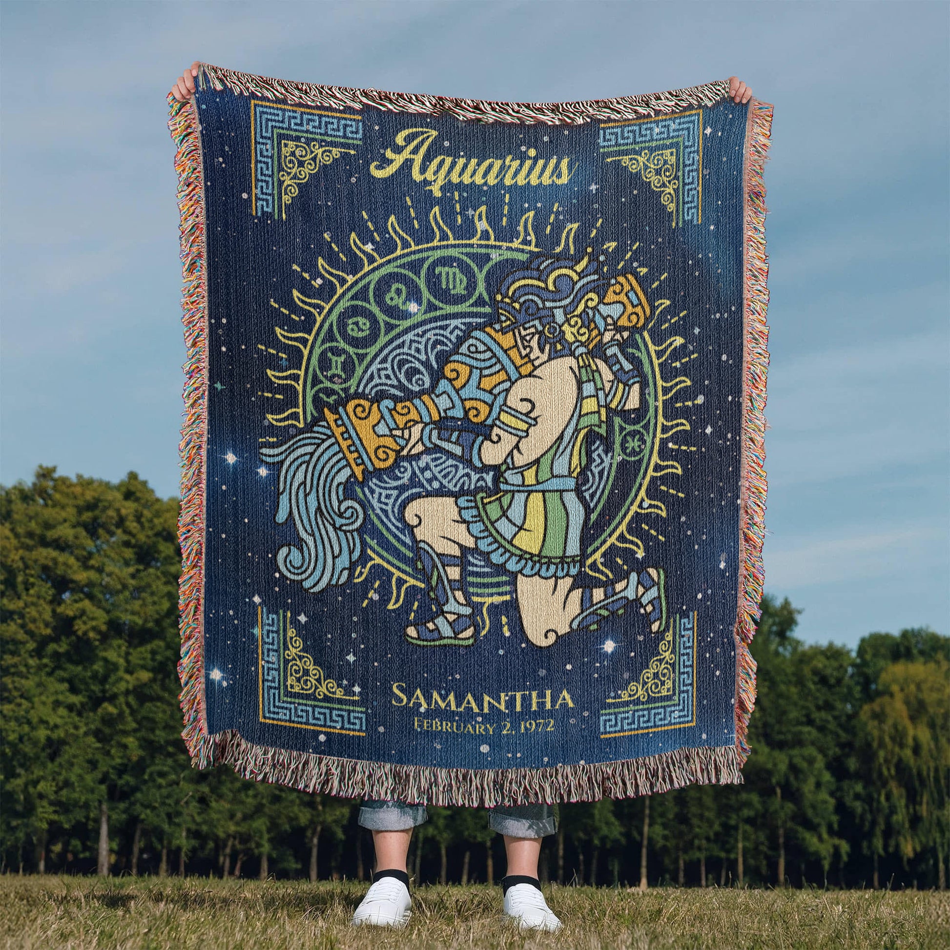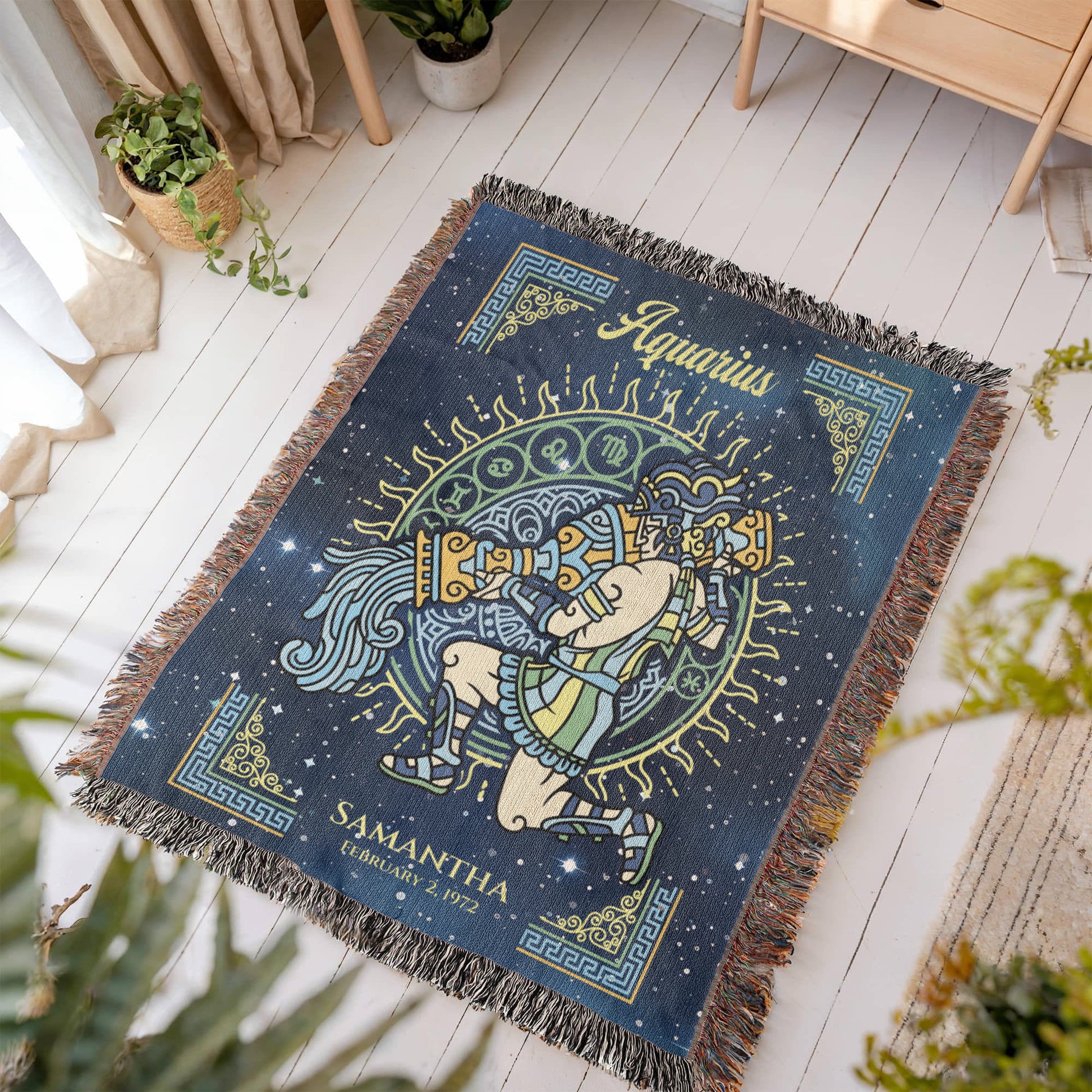 Personalized Aquarius Zodiac Woven Blanket Astrology Gift Custom Throw