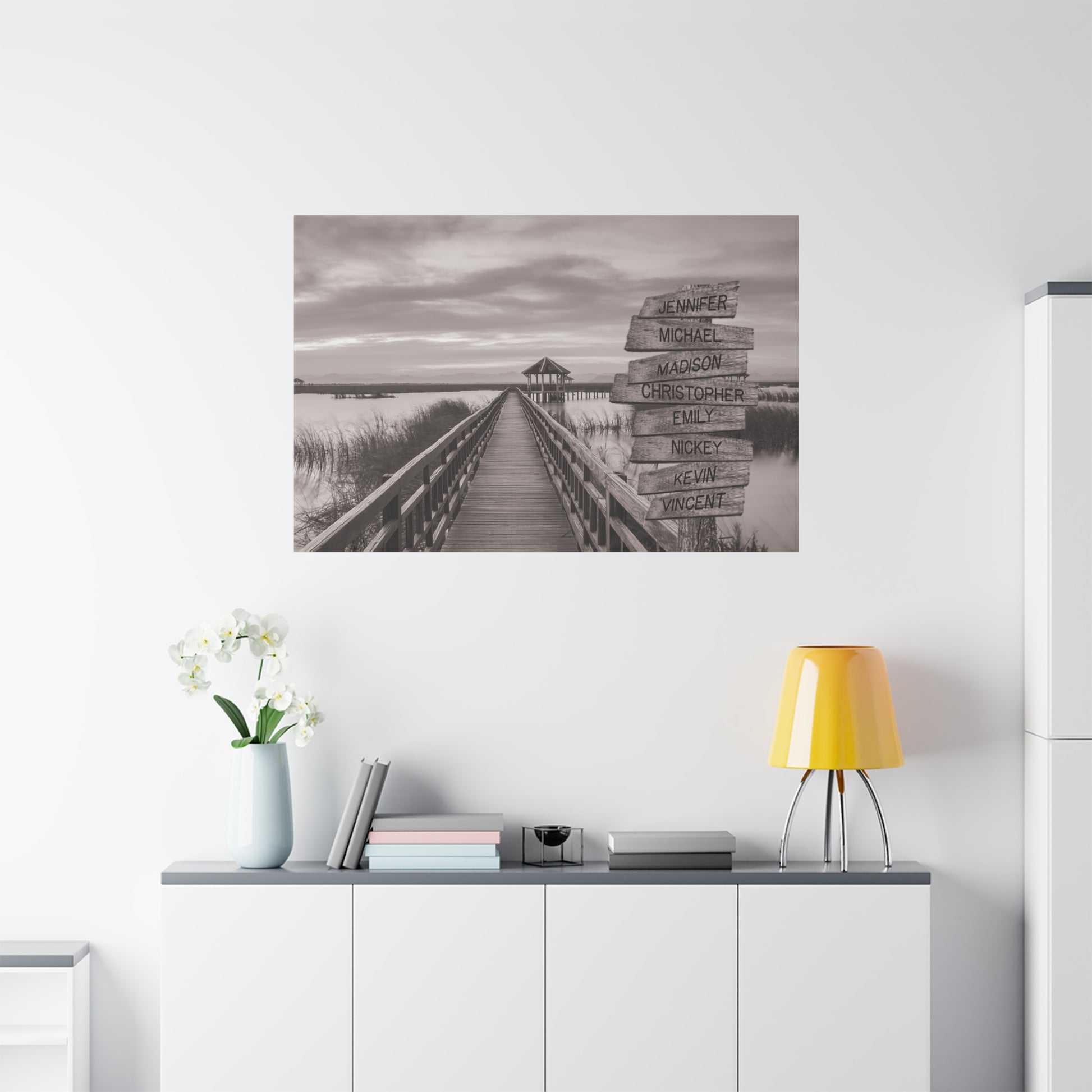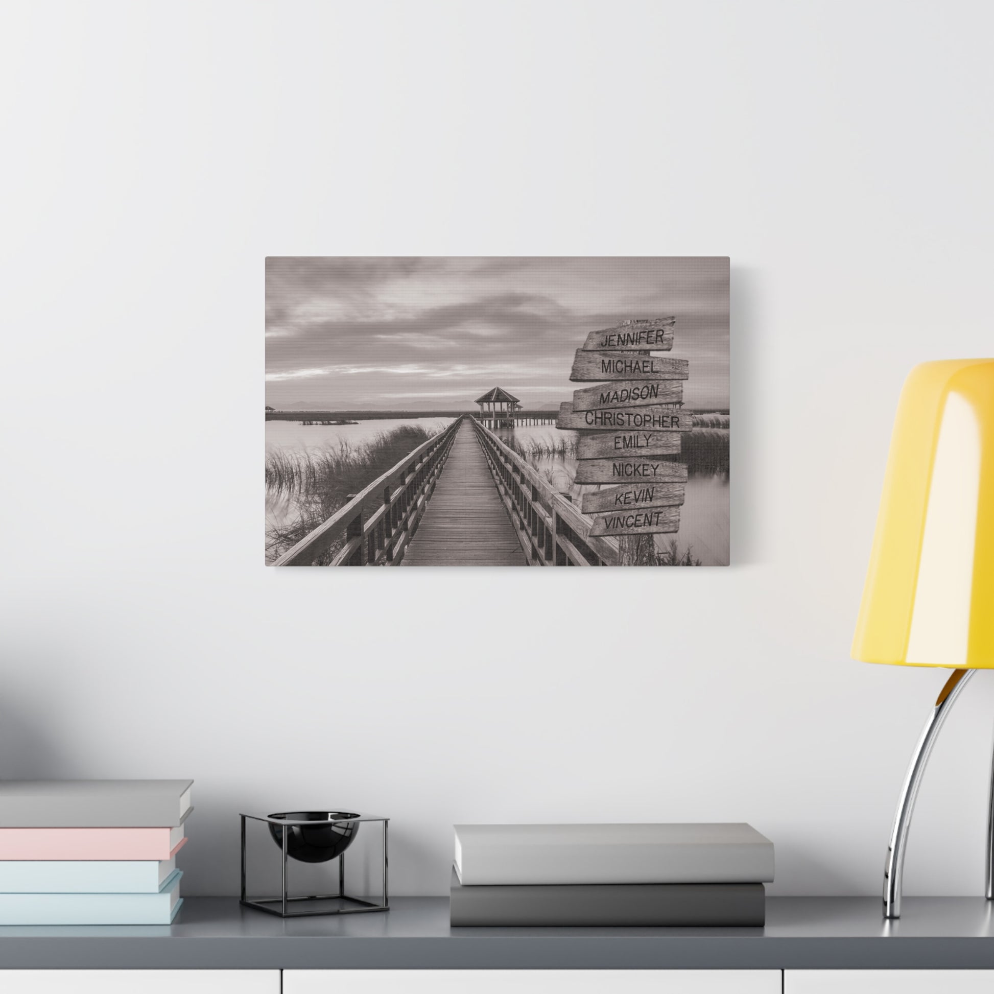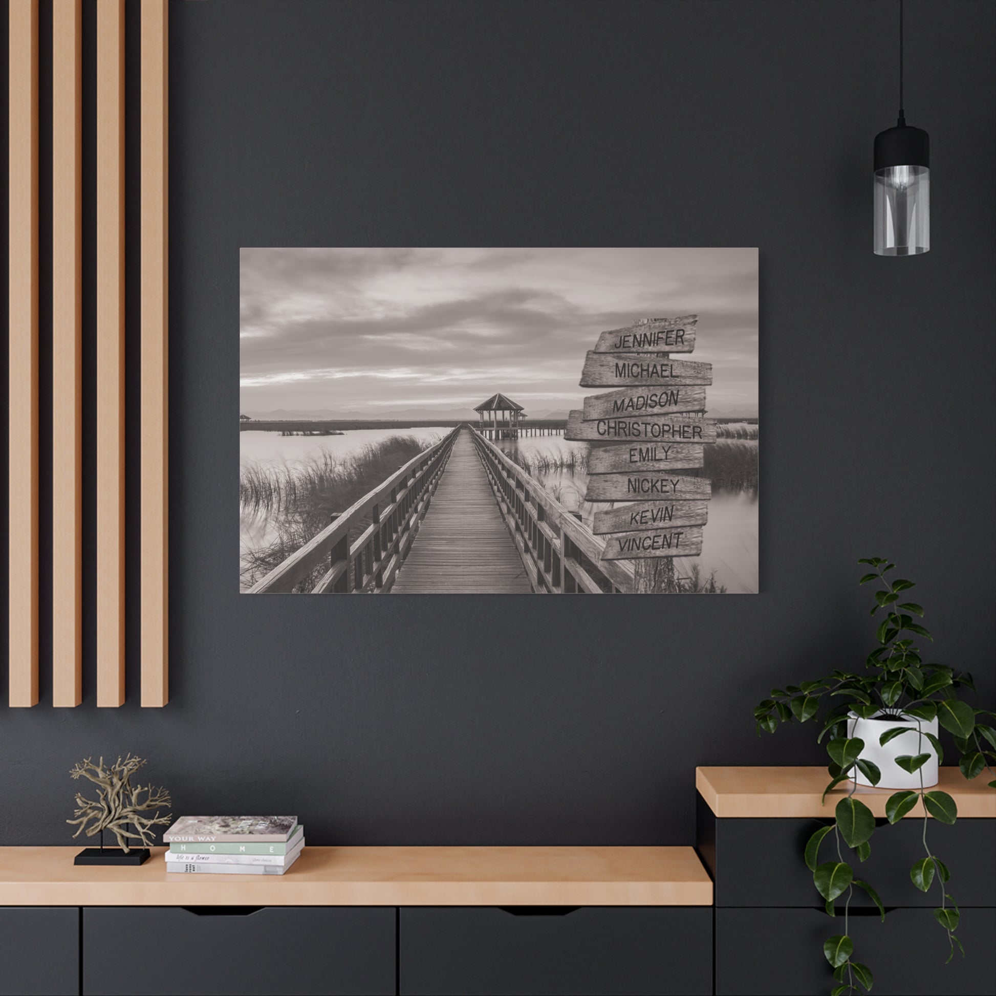 Transform your living space into a tranquil escape with this tree on a hill multi-name directional premium canvas wall art. This customized canvas art brings a touch of nature and personalization to any room. Perfect for families, couples, or friends, each piece features customizable directional signs with the names of your loved ones, creating a unique and meaningful wall art experience.