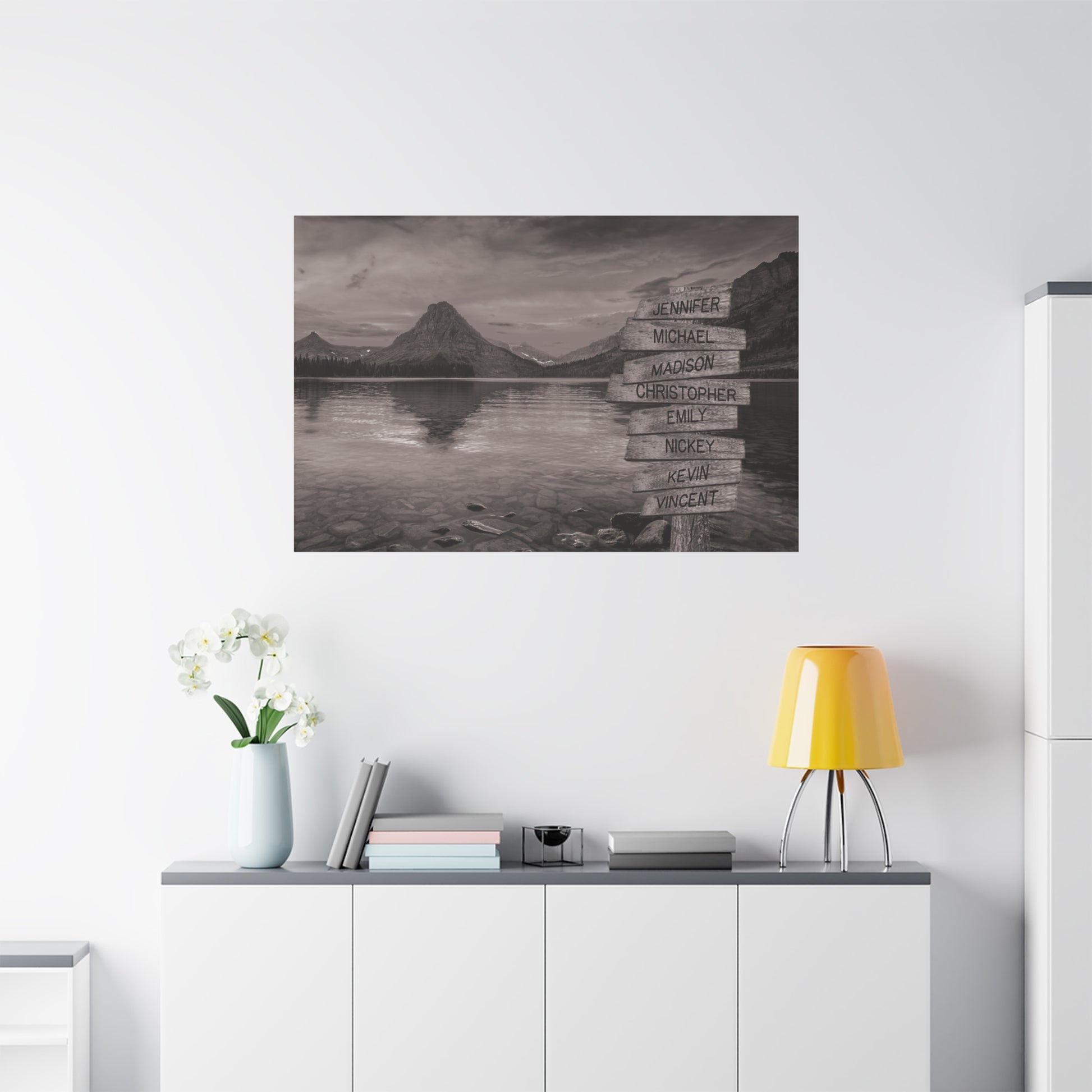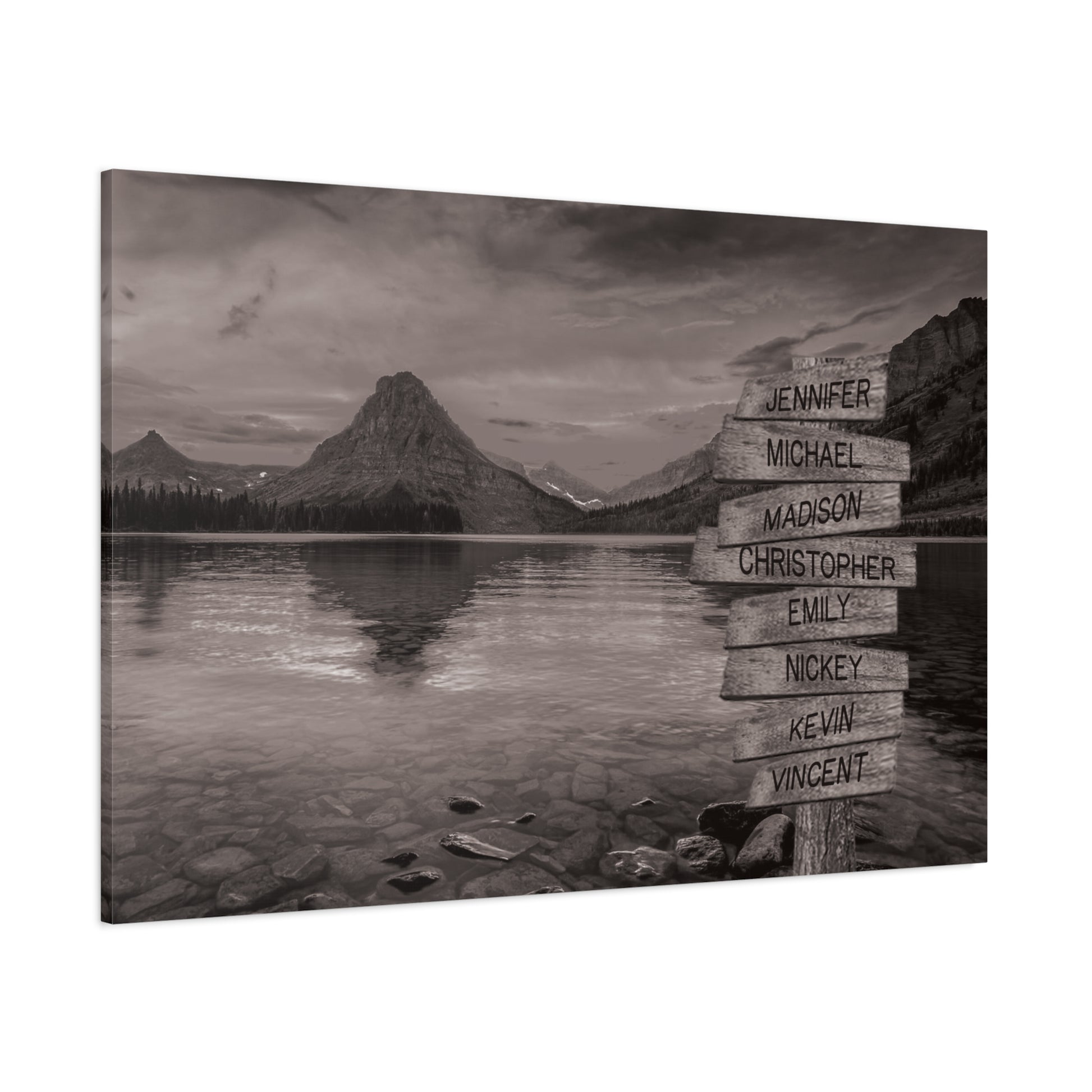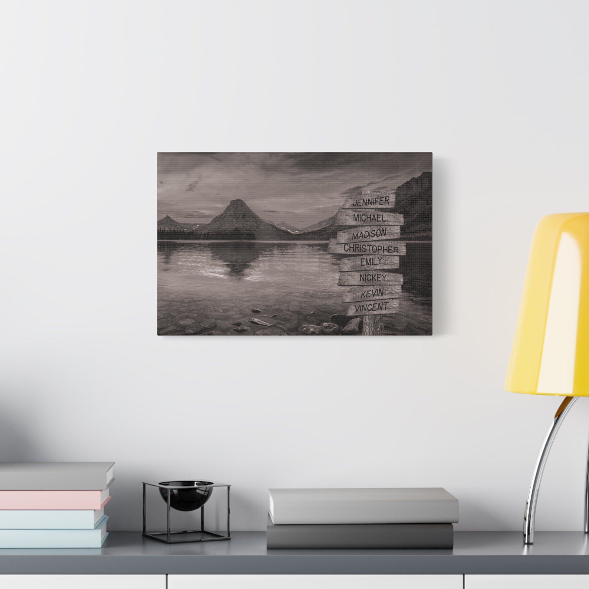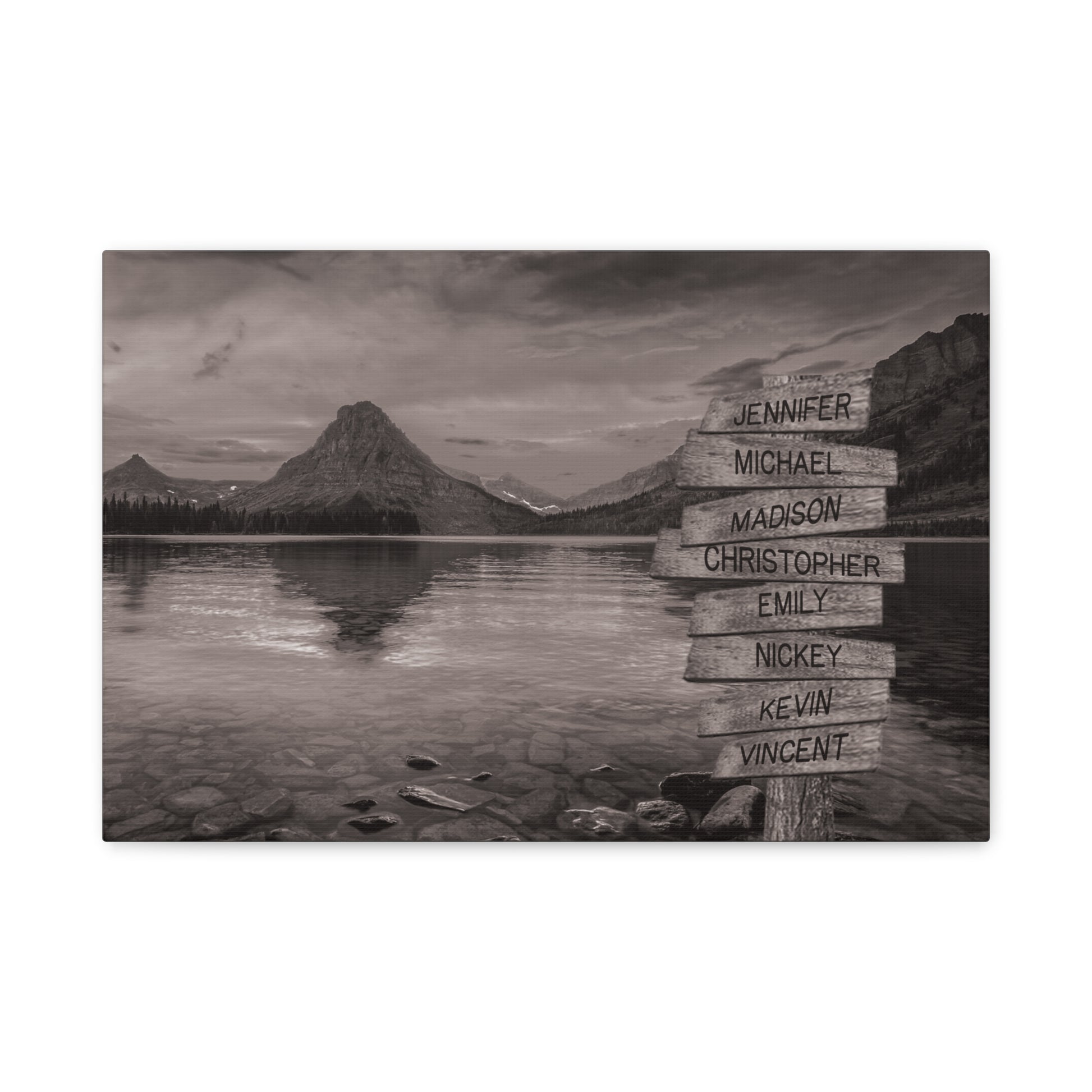 Transform your living space into a tranquil escape with this tree on a hill multi-name directional premium canvas wall art. This customized canvas art brings a touch of nature and personalization to any room. Perfect for families, couples, or friends, each piece features customizable directional signs with the names of your loved ones, creating a unique and meaningful wall art experience.