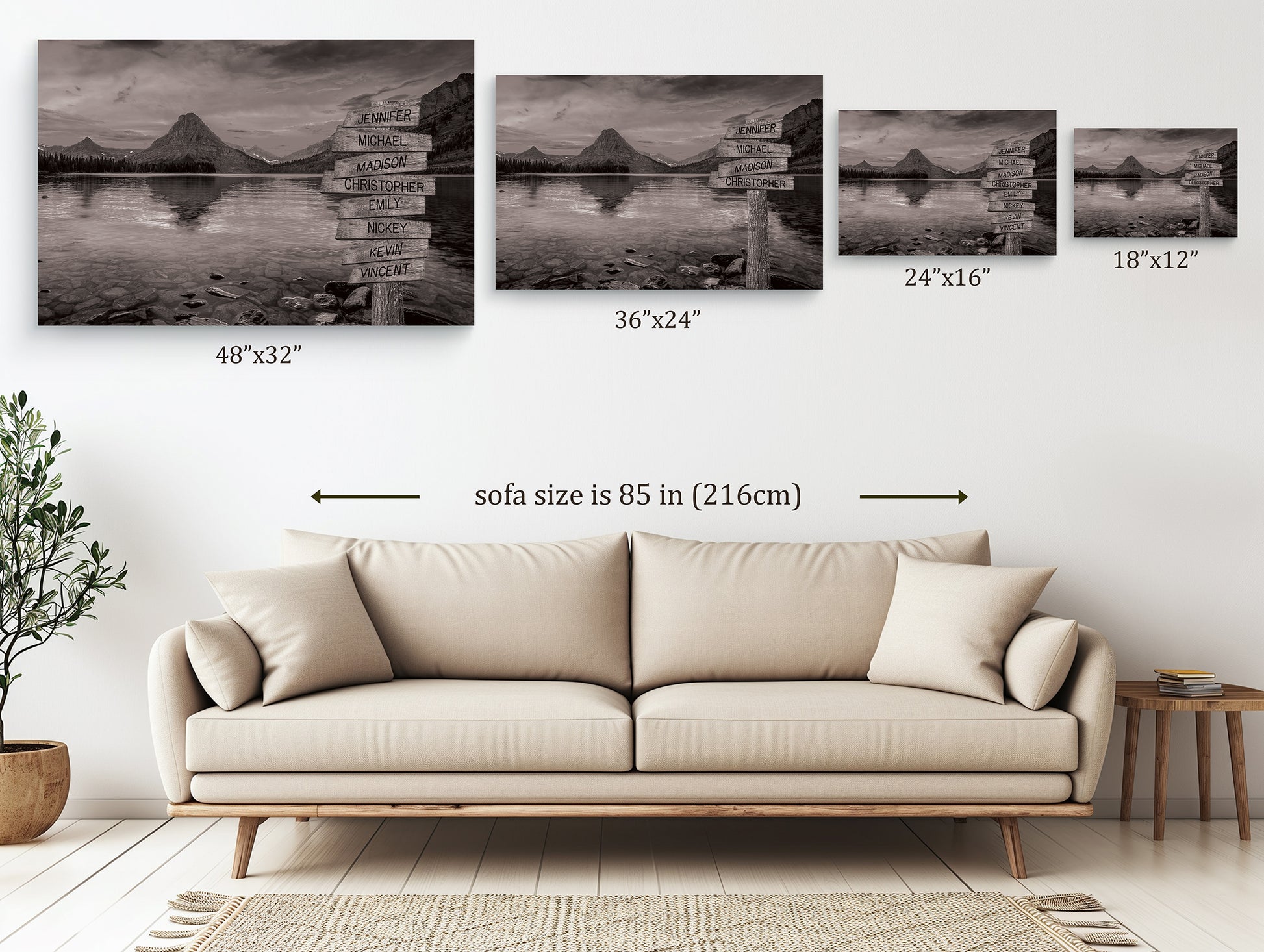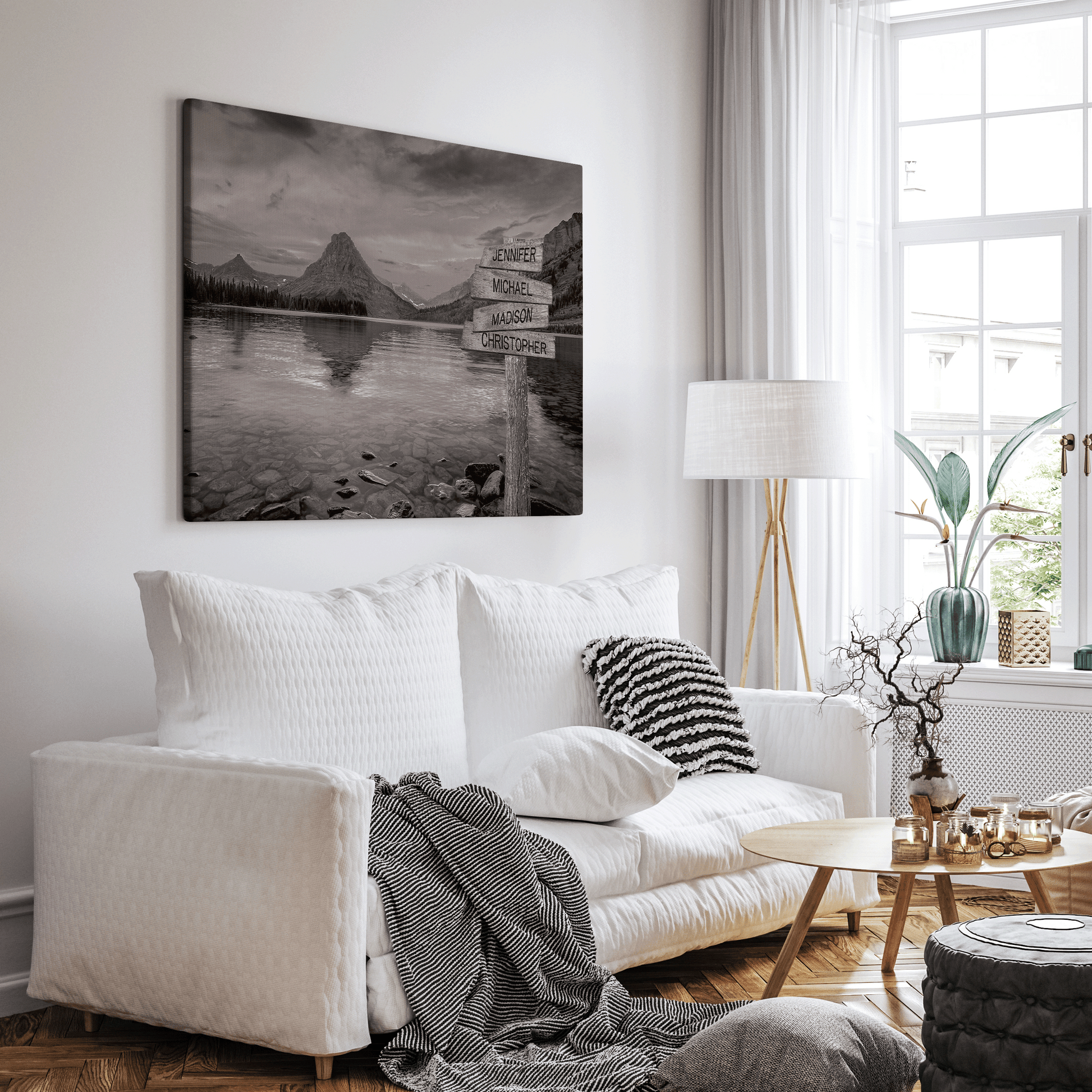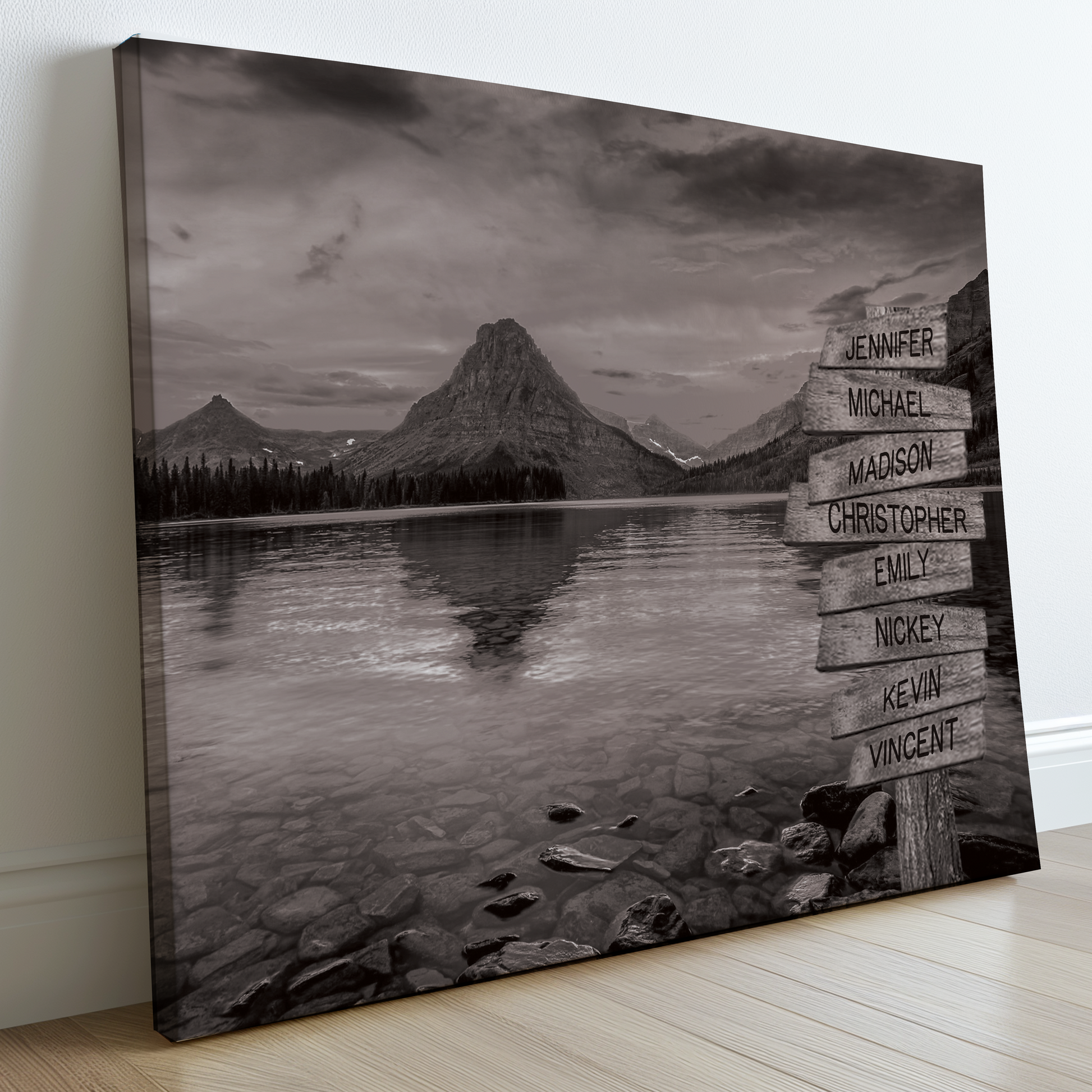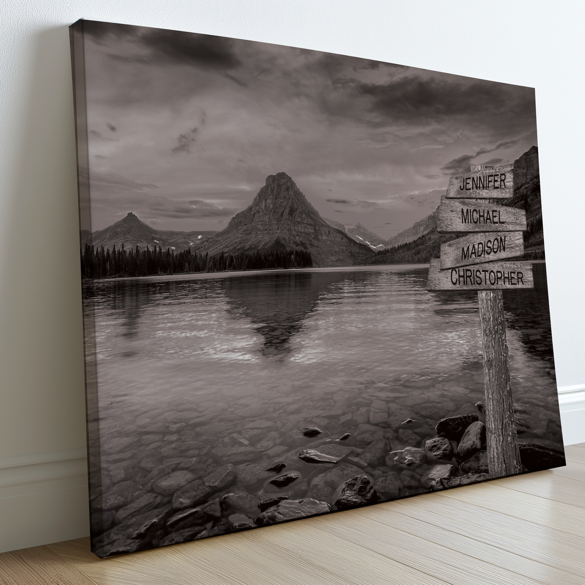Transform your living space into a tranquil escape with this tree on a hill multi-name directional premium canvas wall art. This customized canvas art brings a touch of nature and personalization to any room. Perfect for families, couples, or friends, each piece features customizable directional signs with the names of your loved ones, creating a unique and meaningful wall art experience.