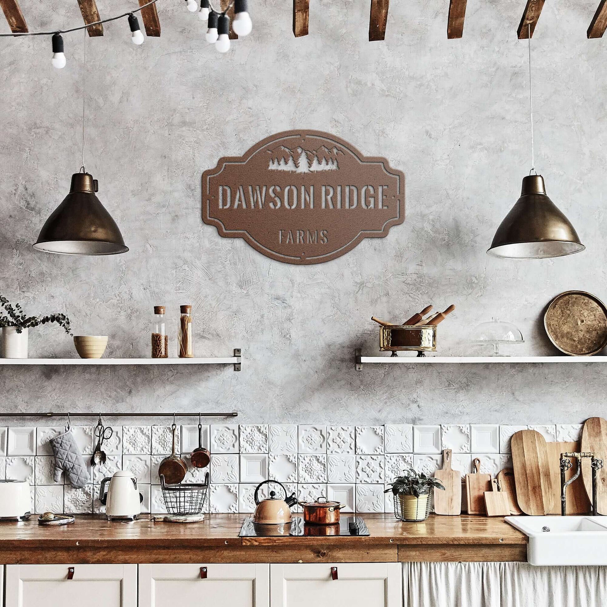 Mountain Ridge Family Name Personalized Metal Wall Art Decor Sign