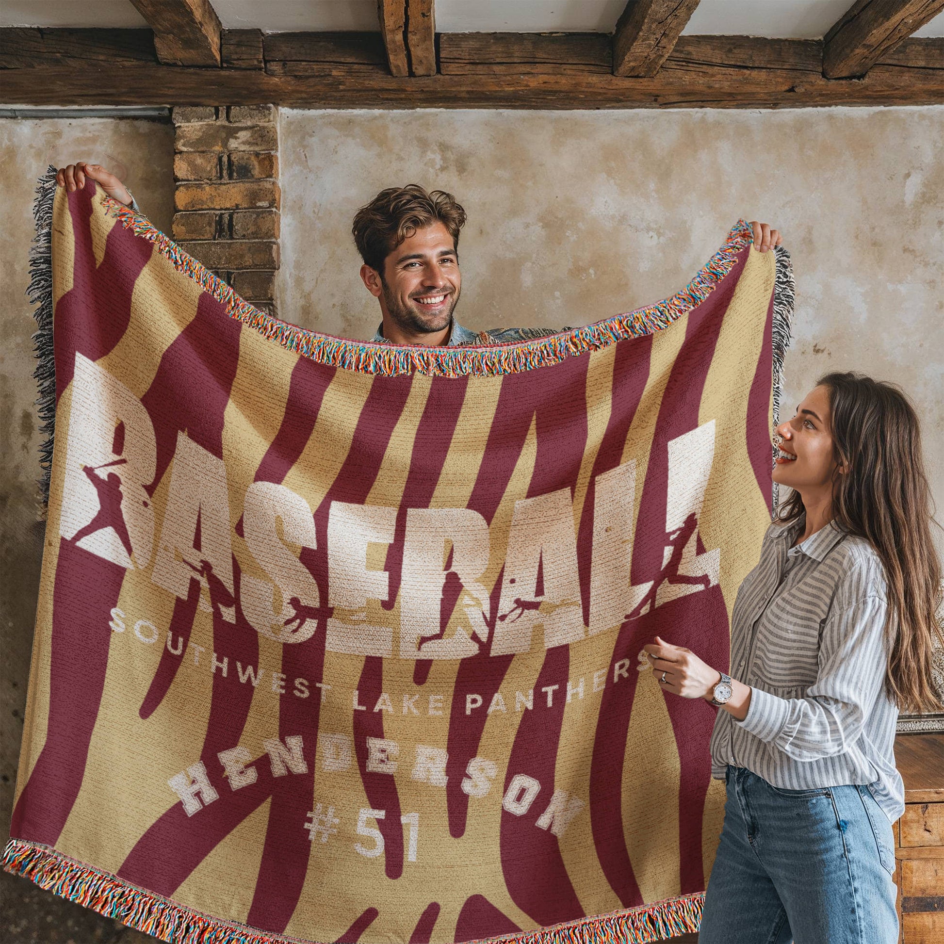 Personalized Baseball Player Woven Blanket Throw – Custom Athlete Gift