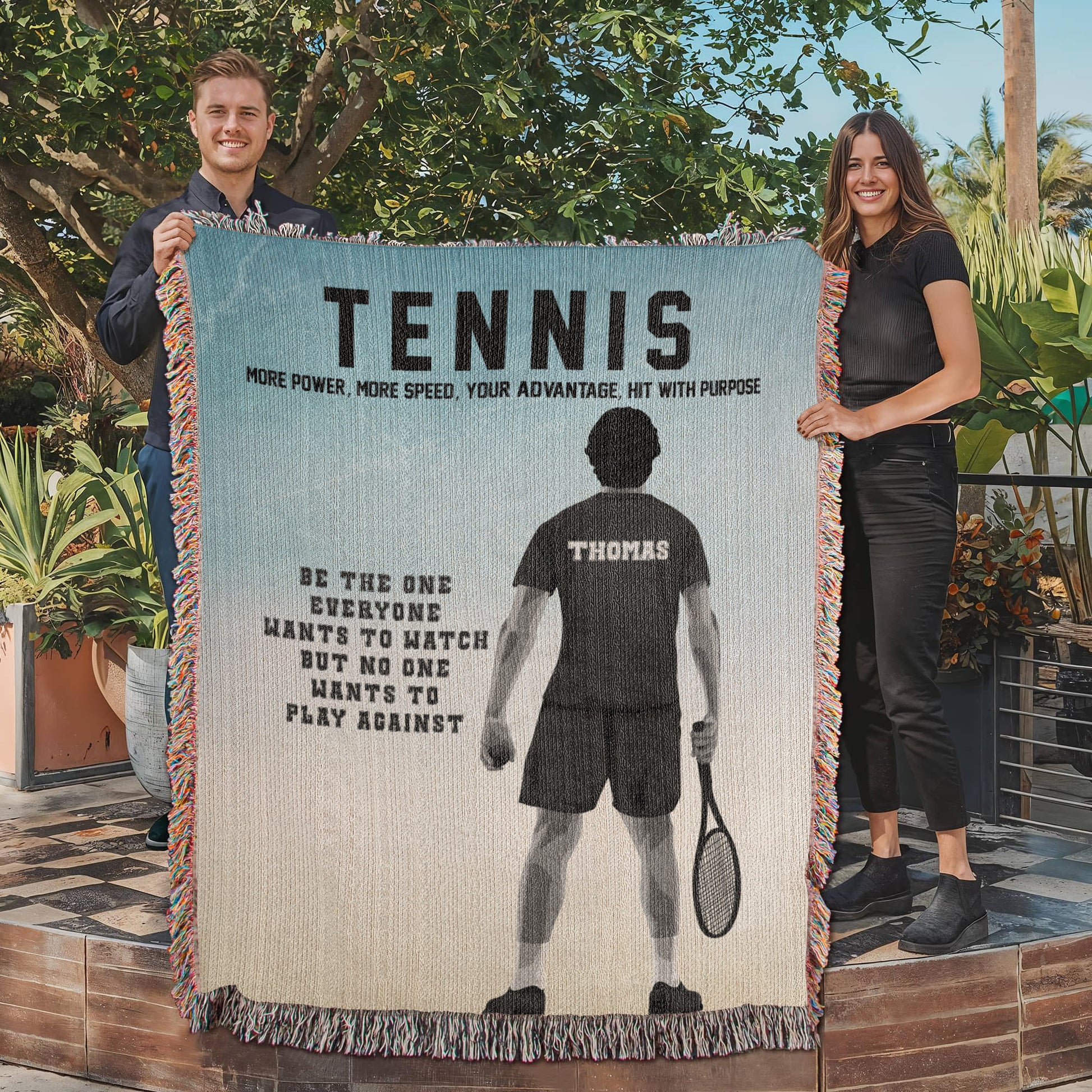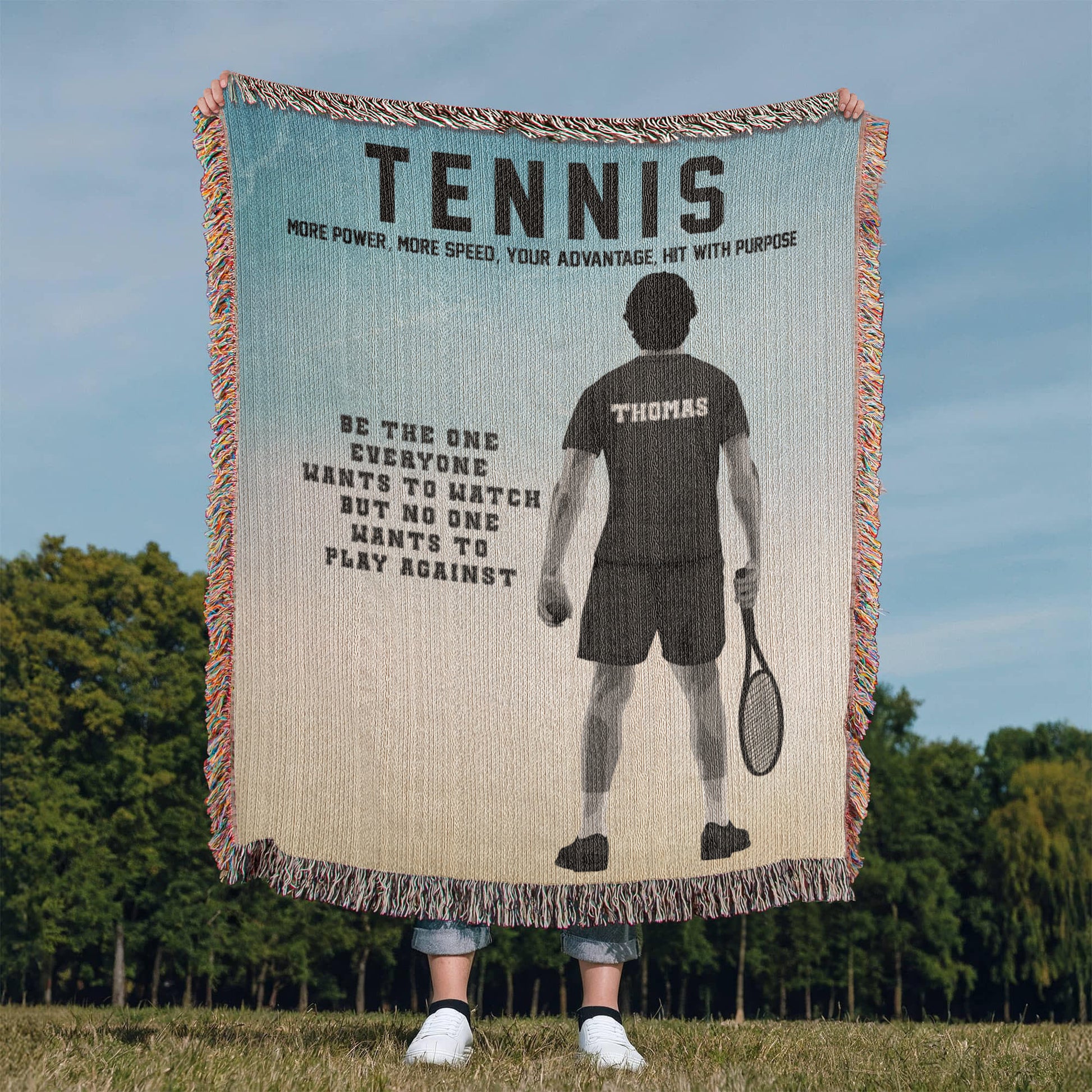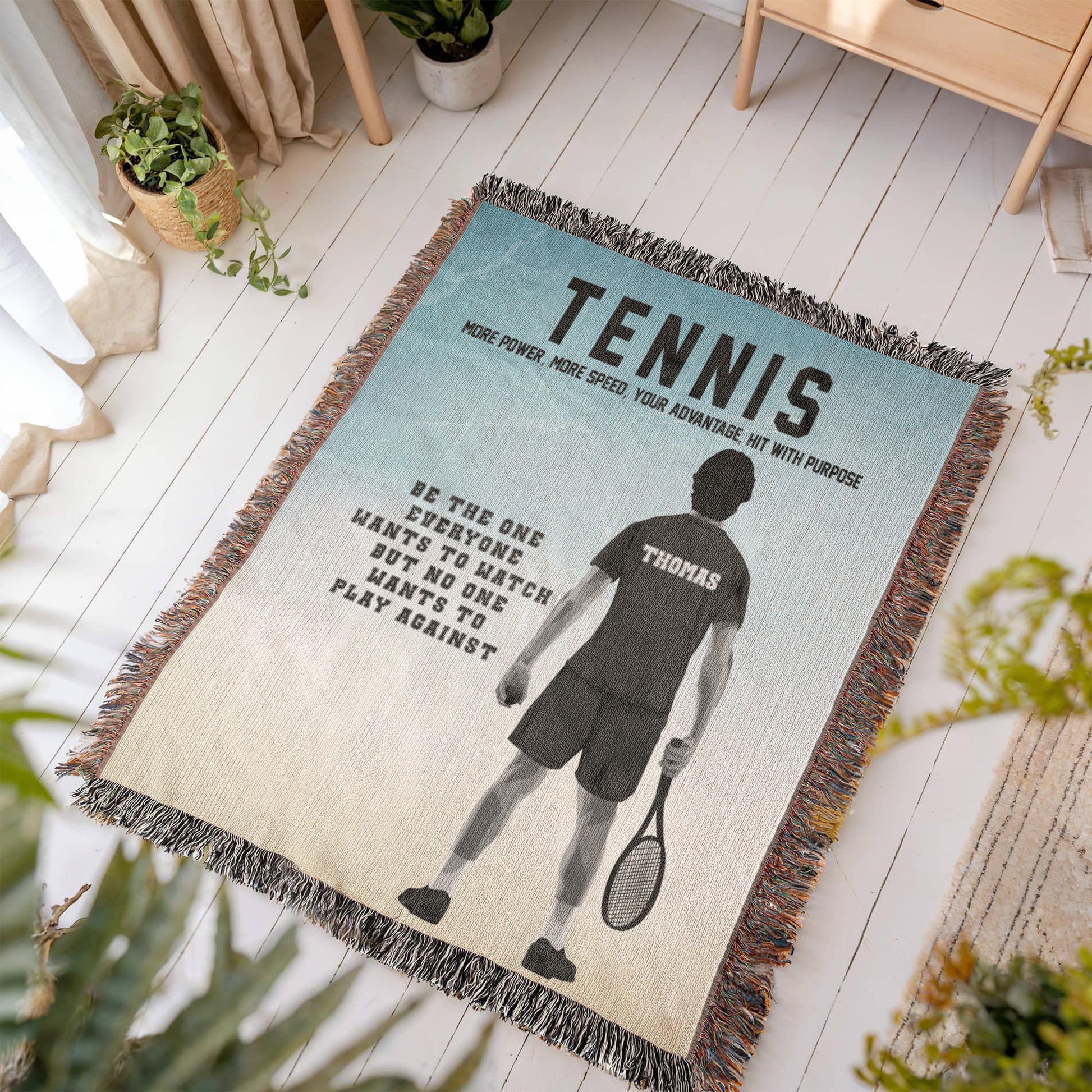 Personalized Boys Tennis Woven Blanket Custom Tennis Gift Throw