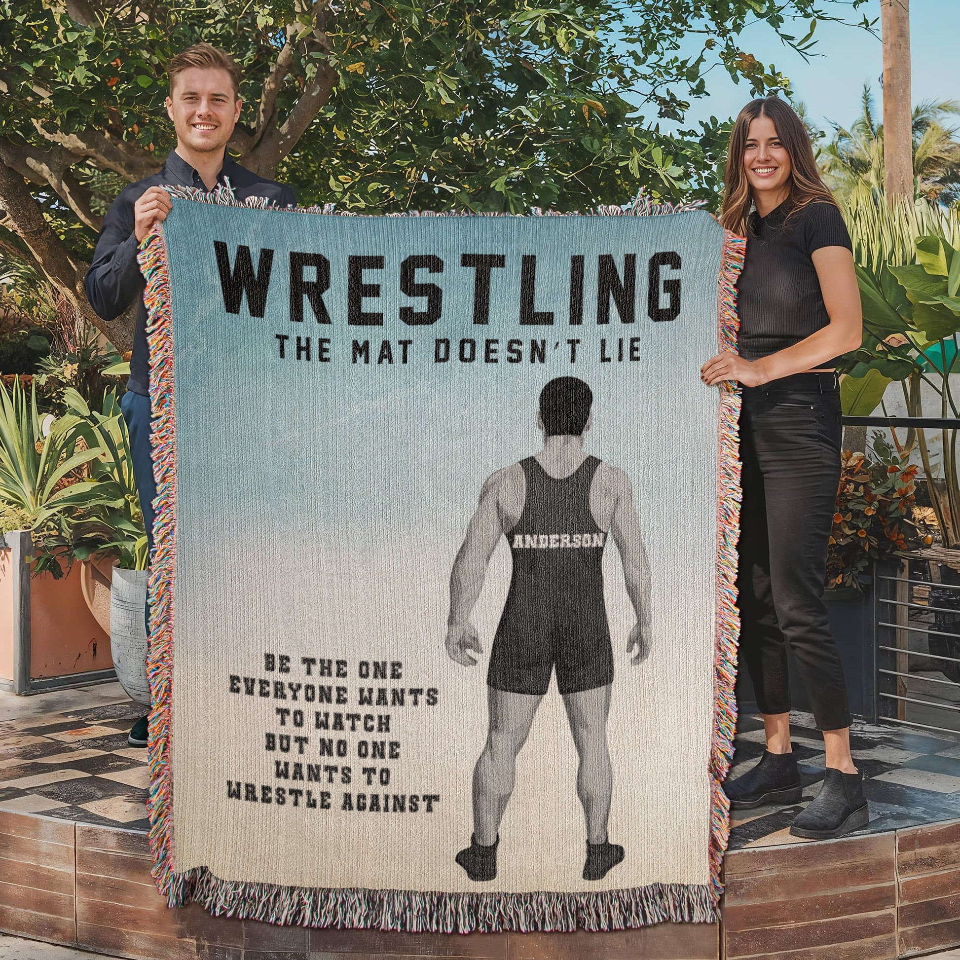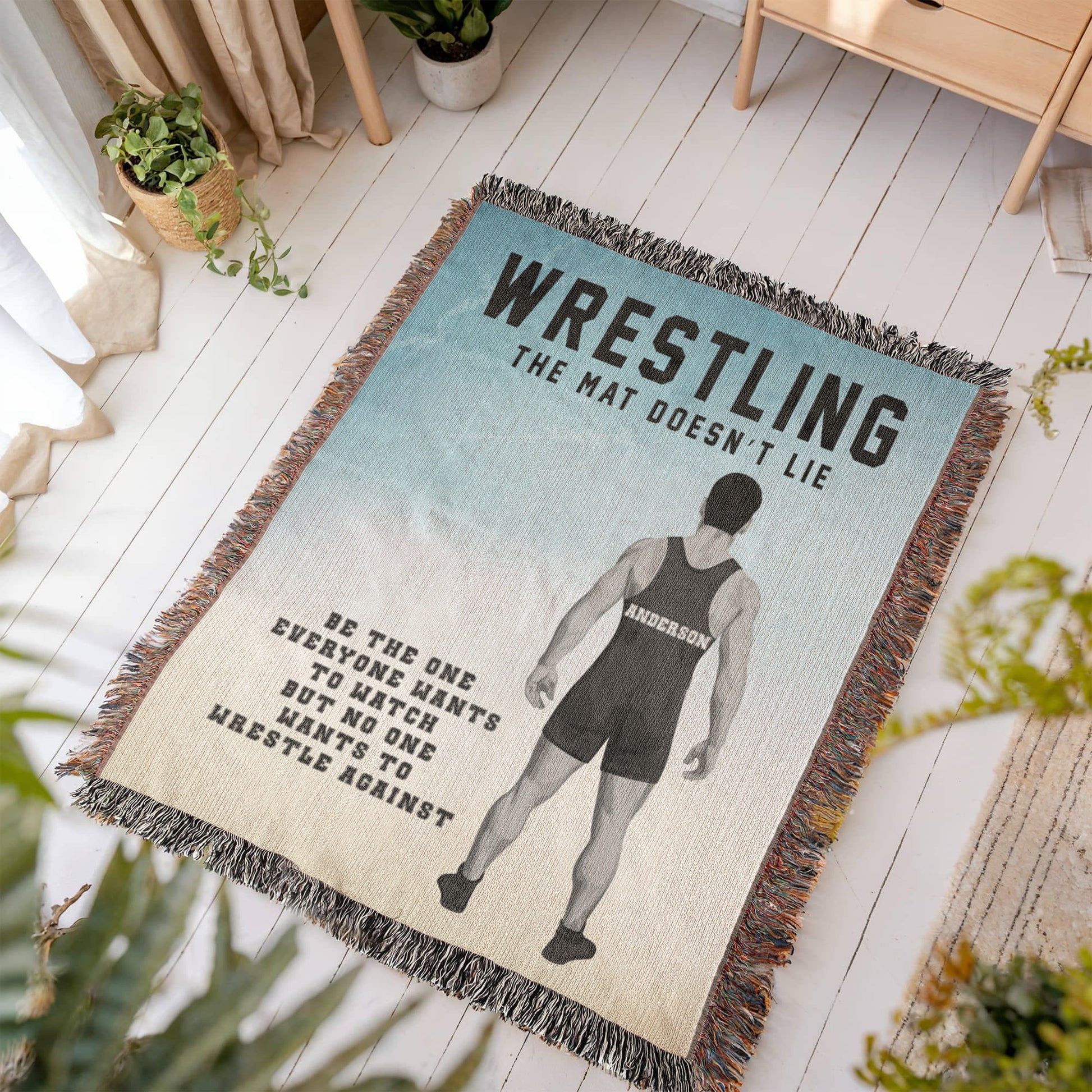 Personalized Boys Wrestling Woven Blanket Custom Athlete Gift Throw