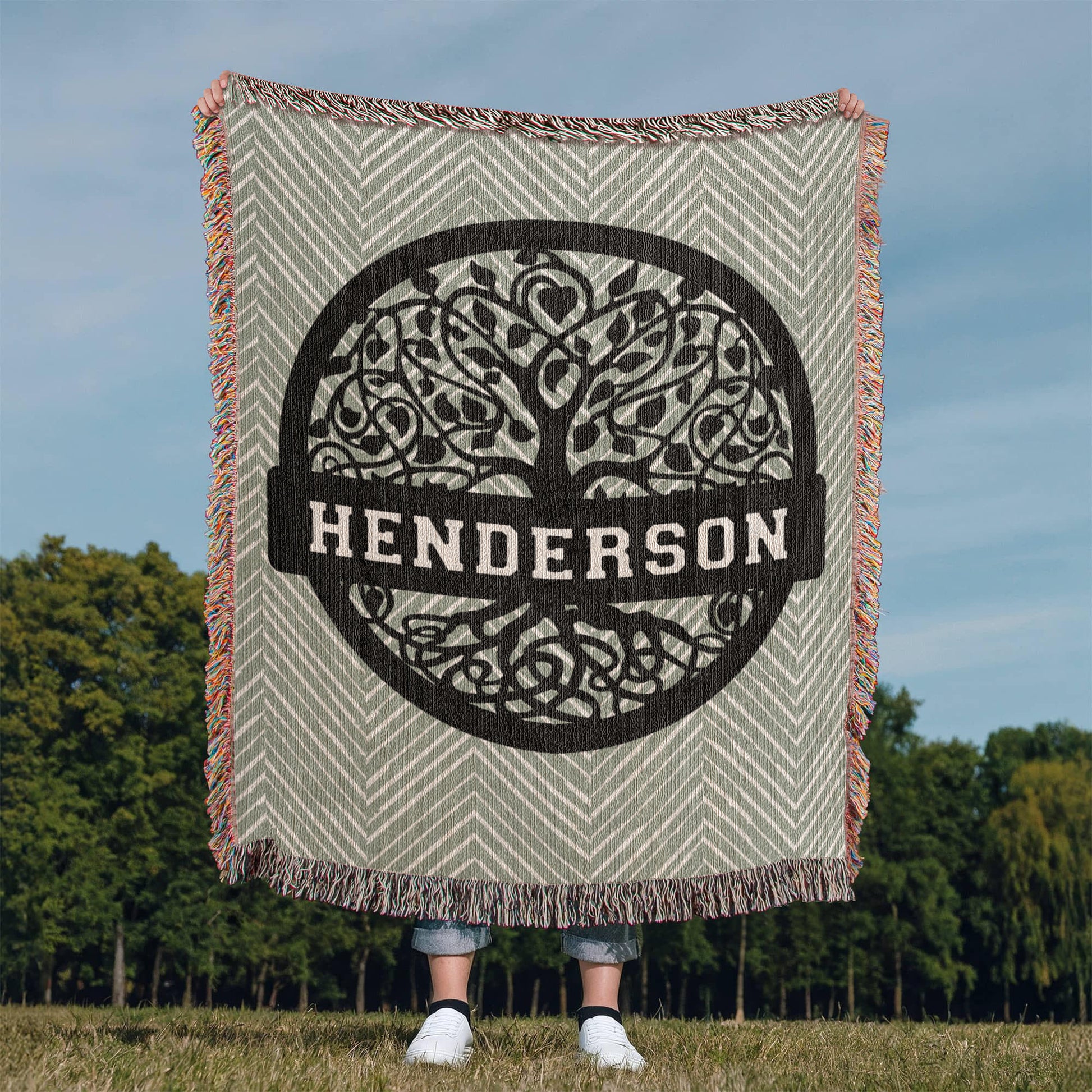 Personalized Family Tree Woven Blanket – Custom Monogram Family Name Throw Gift
