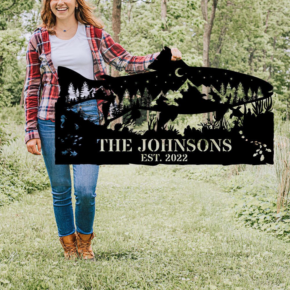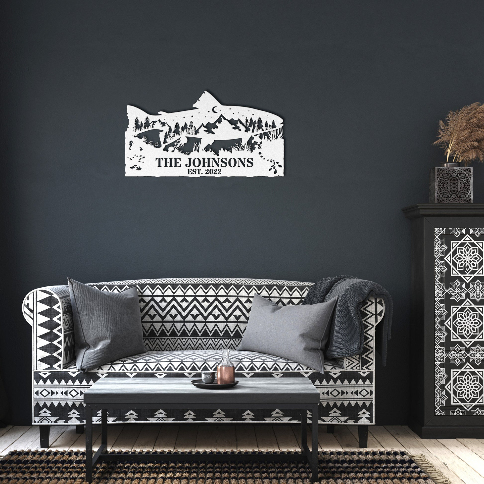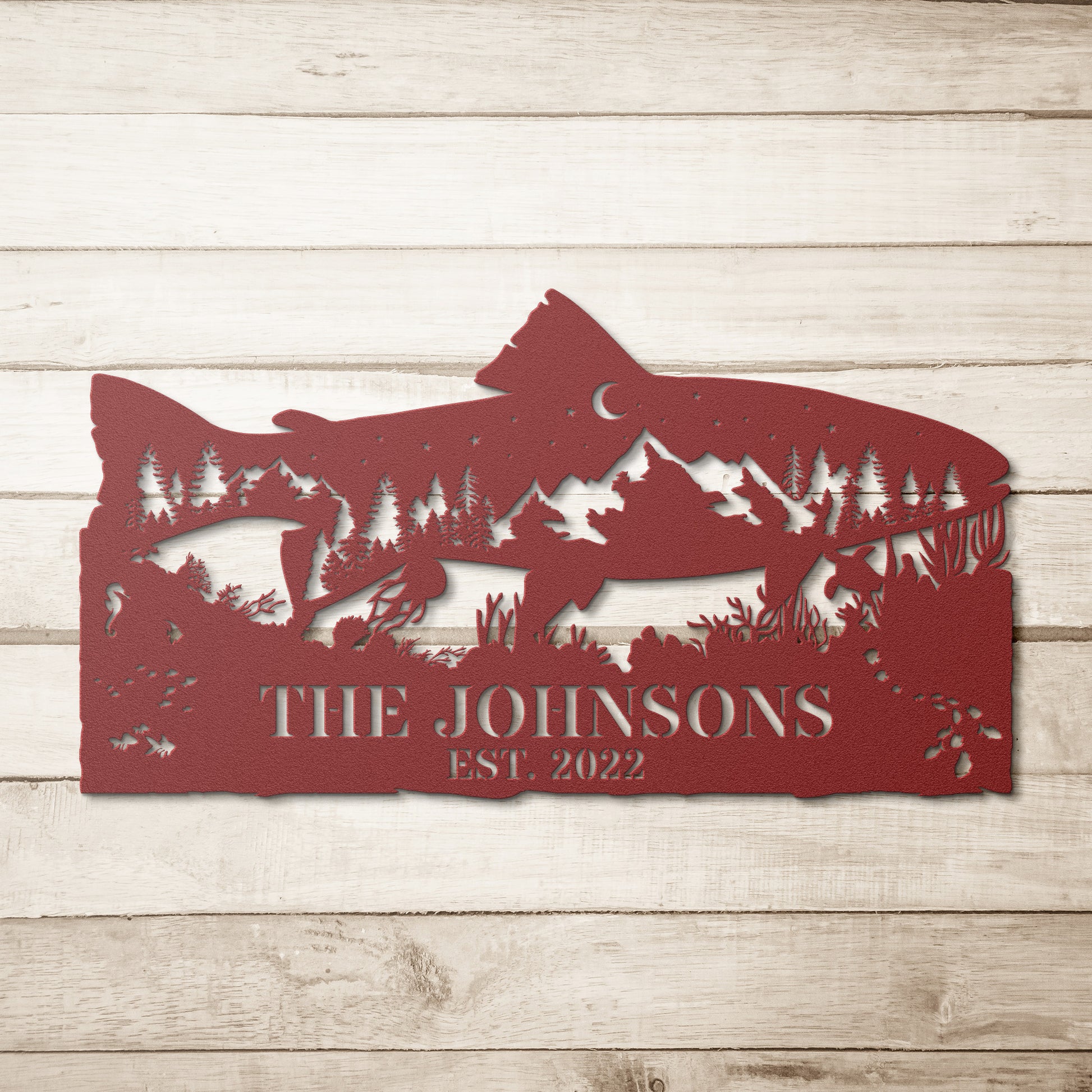 Fish Trout Skyline Personalized Metal Wall Art Sign Outdoor Wall Decor