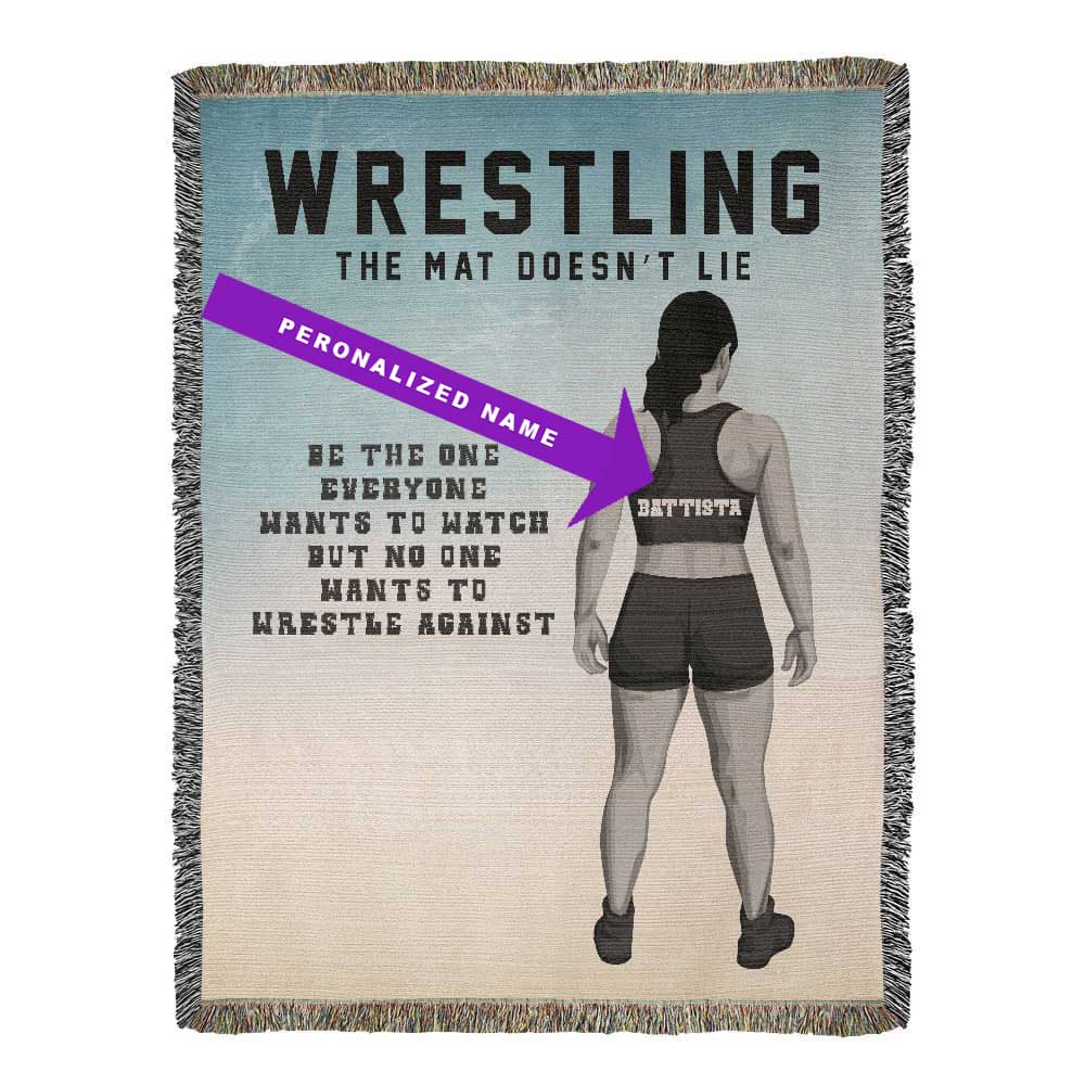 Personalized Girls Wrestling Woven Blanket Custom Athlete Gift Throw