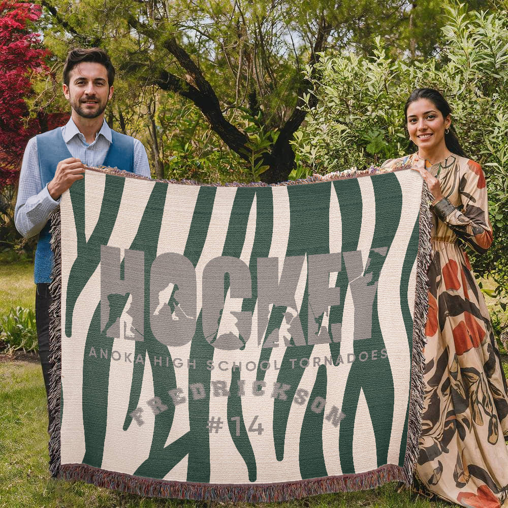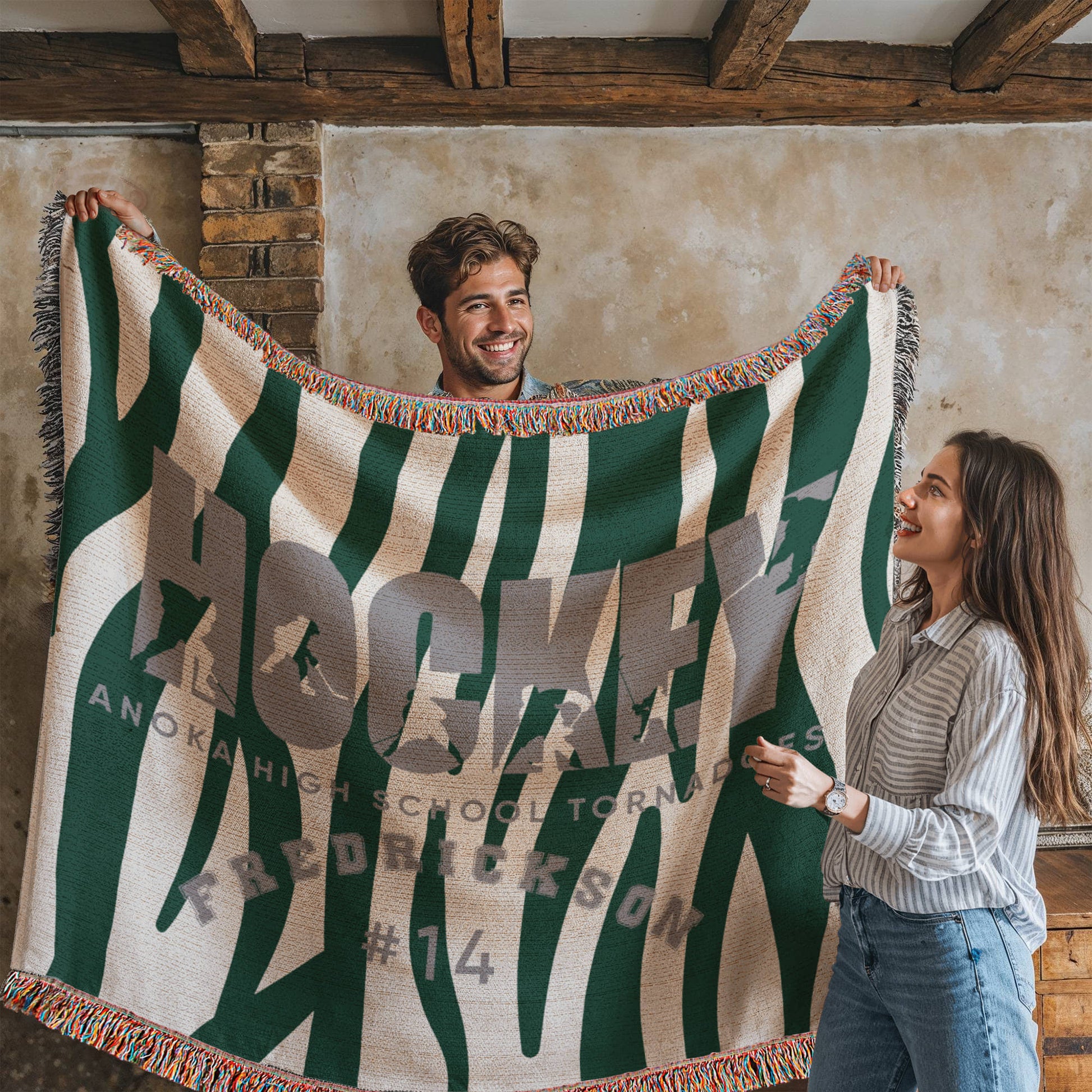 Personalized Hockey Player Woven Blanket Throw – Custom Athlete Gift