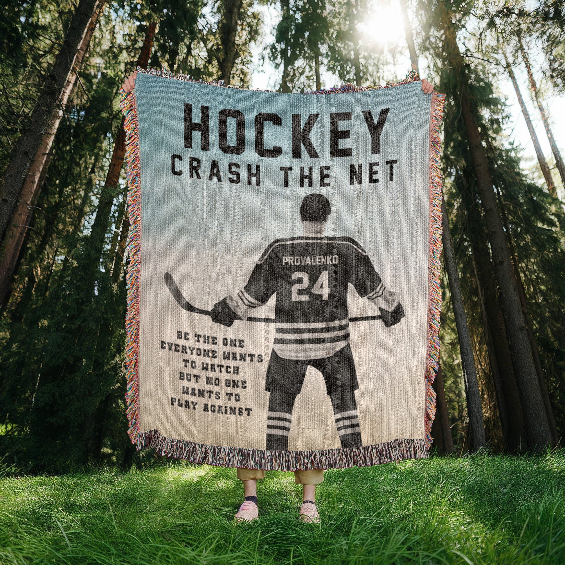 Personalized Hockey Woven Blanket Boys Hockey Gift Custom Throw
