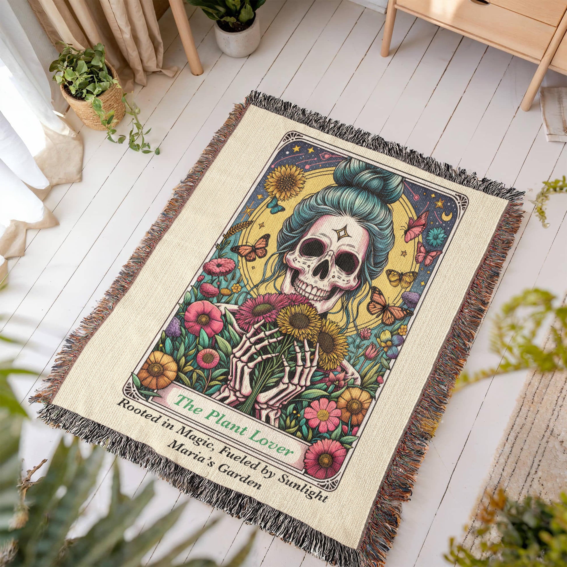 Personalized Plant Lover Tarot Card Woven Blanket Custom Garden Gift Throw