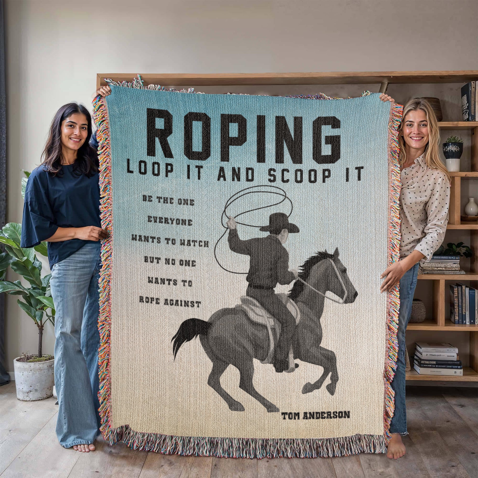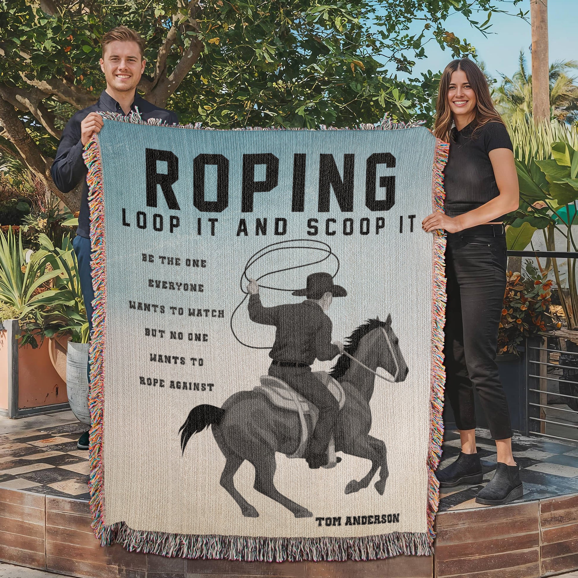 Personalized Roping Cowboy Woven Blanket Rodeo Gift Custom Throw