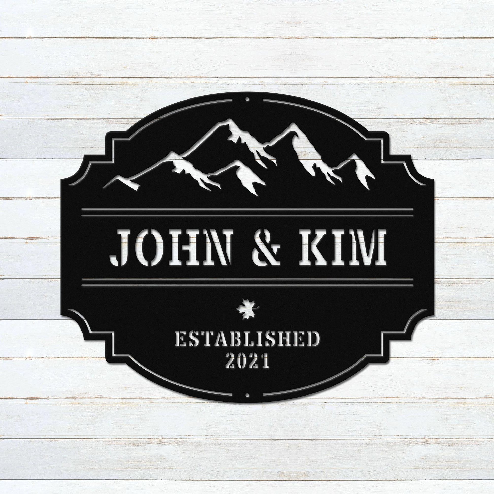 Snow Capped Peaks Custom Monogram Metal Wall Decor Sign
