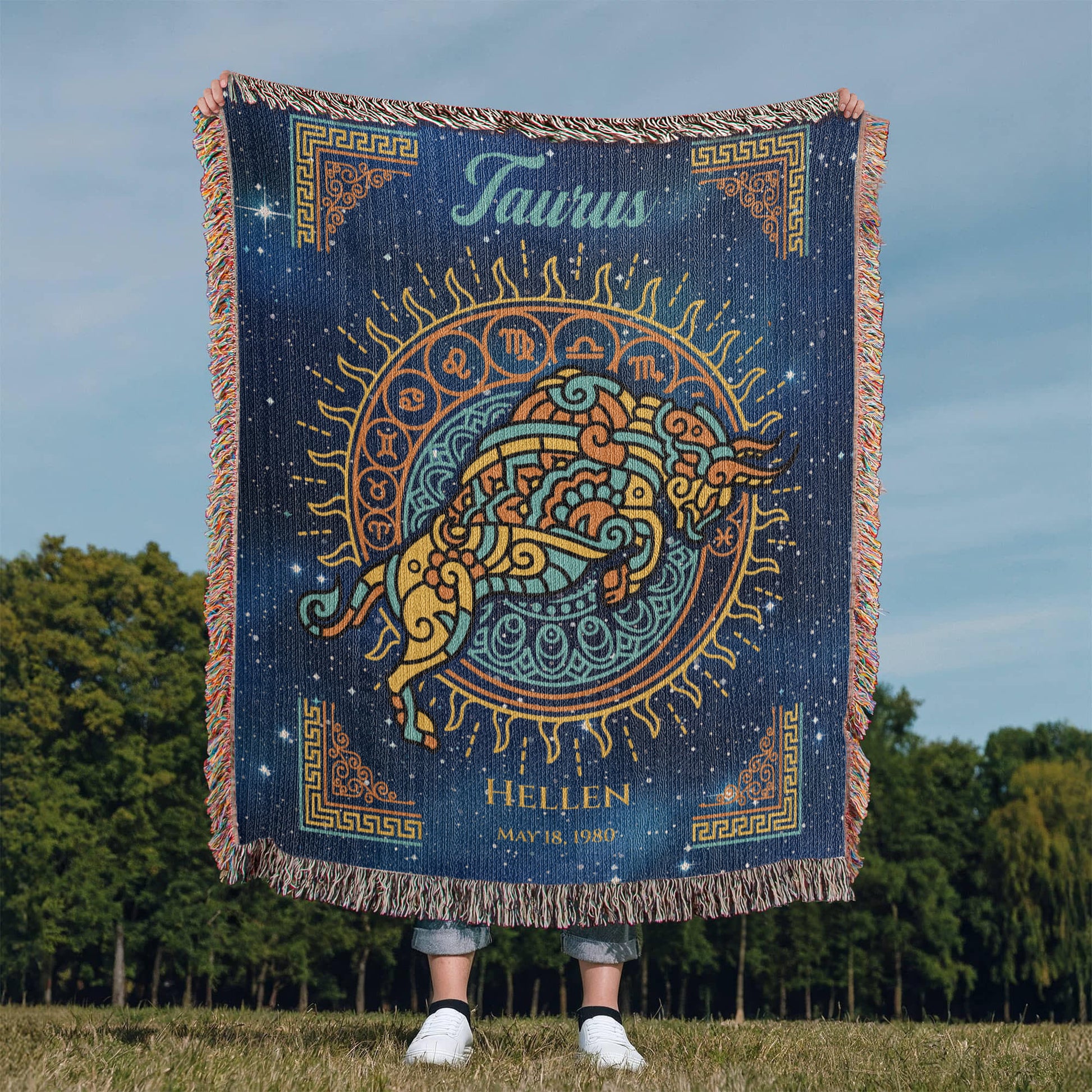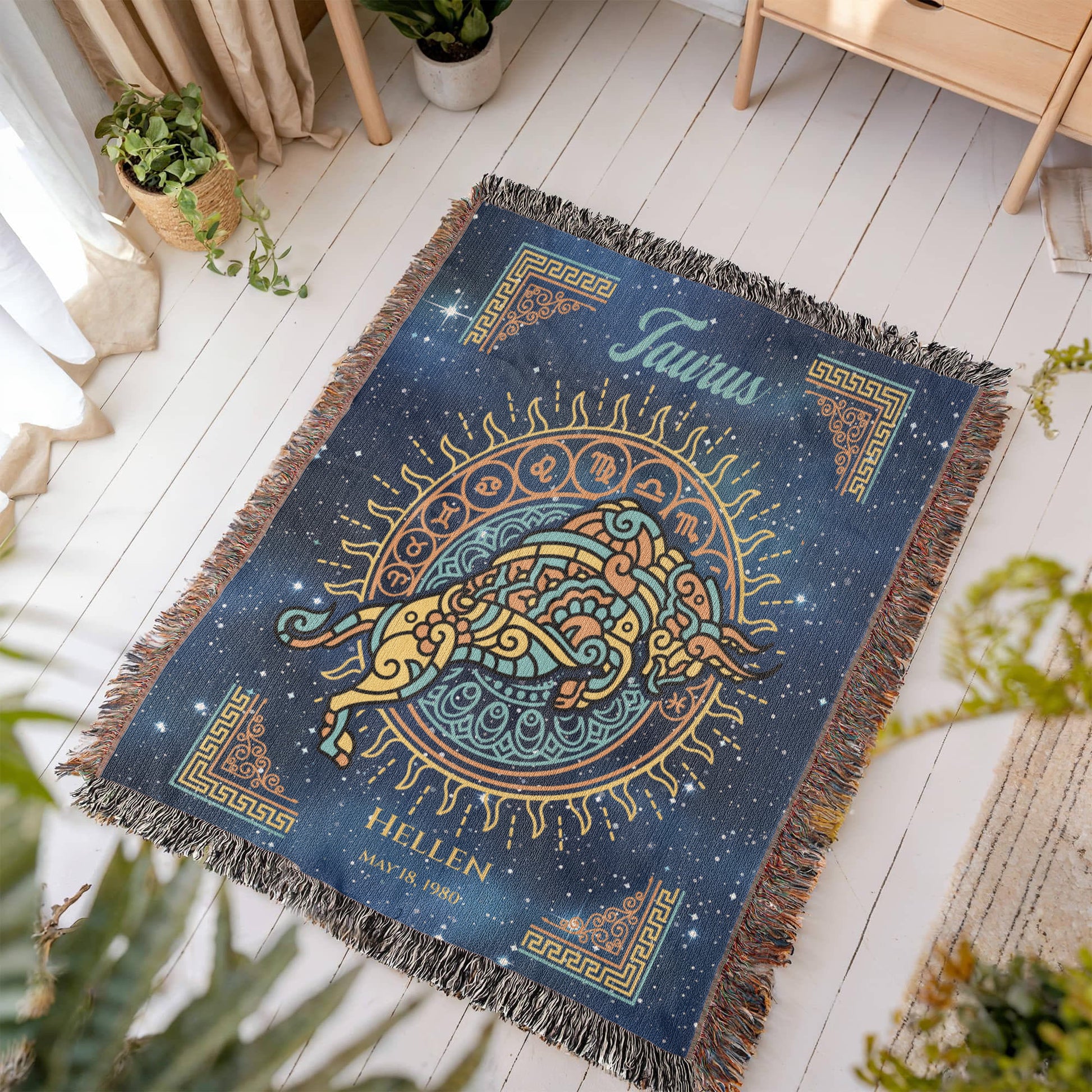 Personalized Taurus Zodiac Woven Blanket Astrology Gift Custom Throw